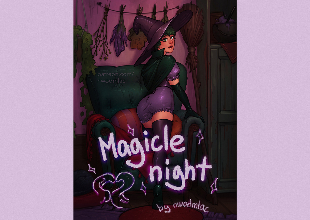 High-res PDF file with 5 page NSFW 18+ comic "Magicle Night", fully uncensored and colored! As well as two cover versions and a sketch page!